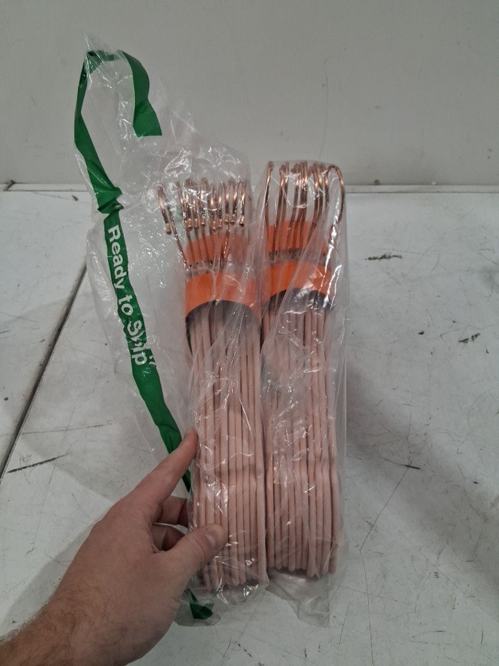 20PK Amazon Basics Slim, Space-Saving, Velvet, Non-Slip, Sturdy Suit Clothes Hangers - 17" x 9" - Blush Pink/Gold