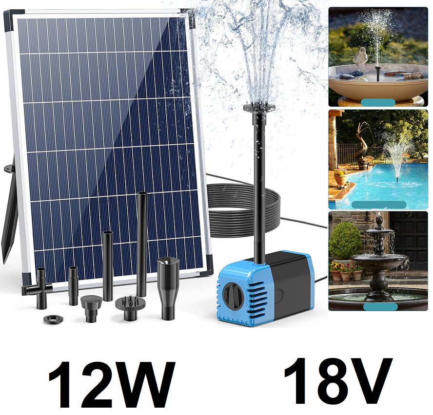 solar powered submersible pump water fountain - 12w 18v