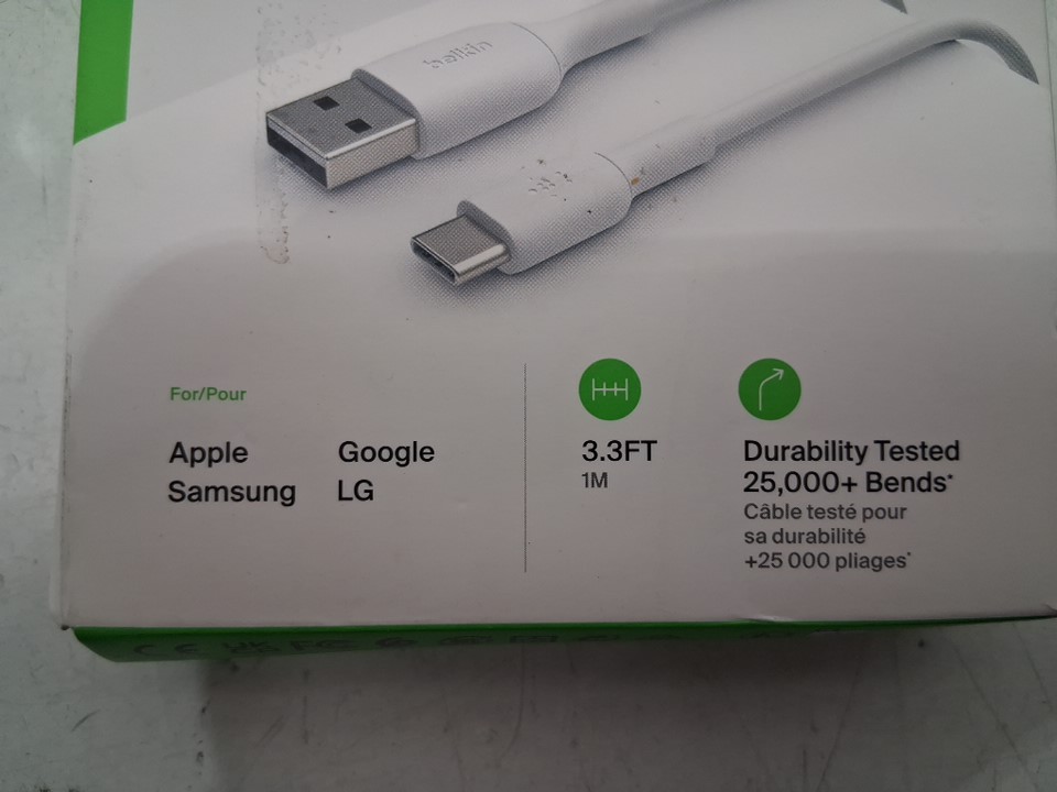 belkin boostcharge usb-a to usb-c charging cable - 3.3ft - white