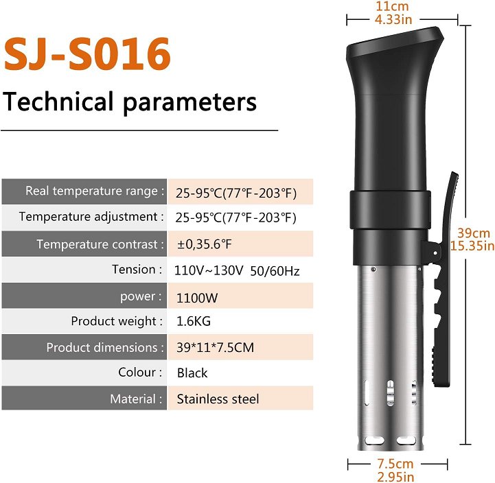 fityou accu slim sous vide thermal immersion cooker with touch screen- 1100w- stainless steel/black (model: sj-s016)