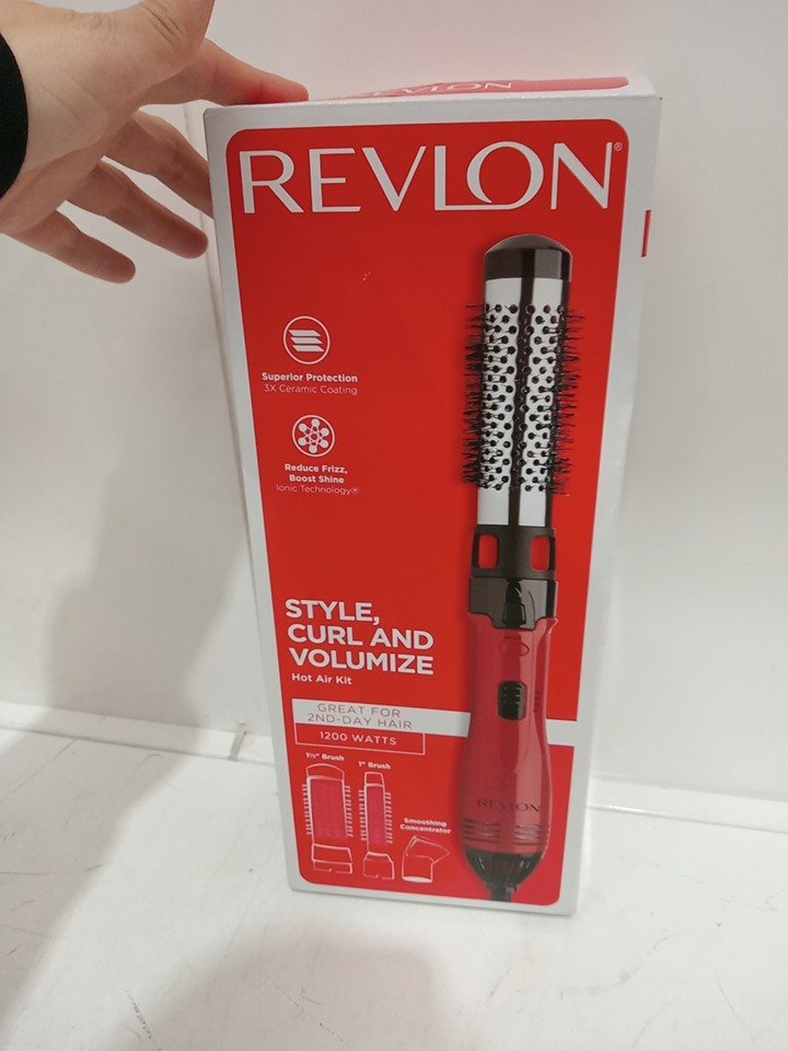 REVLON STYLE, CURL & VOLUMIZE HOT AIR BRUSH SET WITH THERMAL BRUSH ATTACHMENTS & SMOOTHING CONCENTRATOR - 1" & 1.5" ATTACHMENTS - 1200W - RED (MODEL: RV440RED)