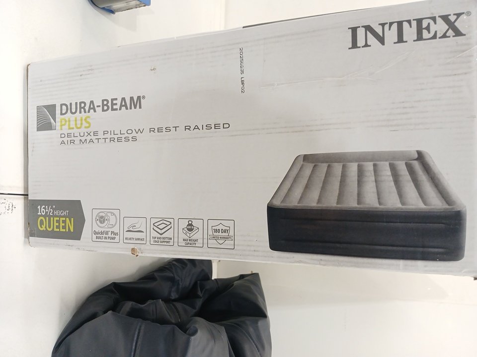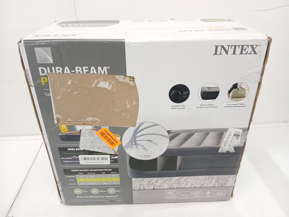 intex DuraBeam Deluxe Comfort Plush Air Mattress with Built in Electric Pump - QUEEN - 22"H - grey/dark blue (model: ap619d)