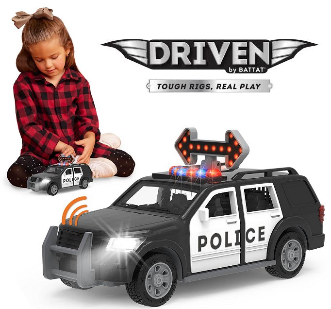 Driven by Battat Micro Police Car Toy with Lights and Sound - 1/124 Scale - 3+ years