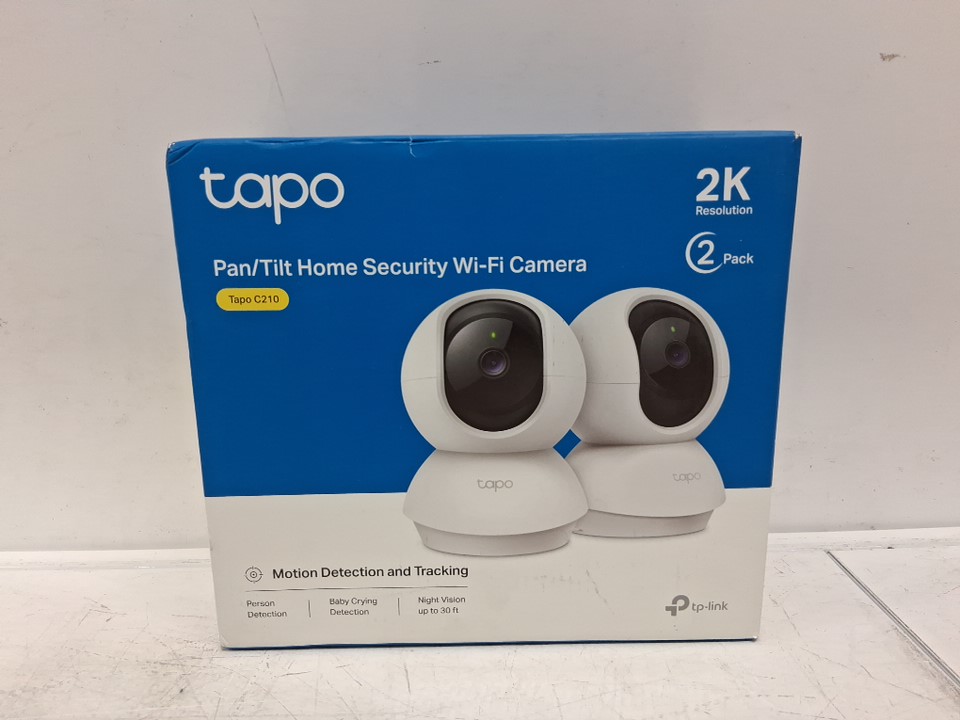 2PK TP-Link Tapo Smart Pan Tilt Home WiFi security Camera -2K Nightvision, motion detection, works with Alexa and Google assistant - white (Model: C210)