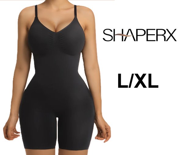 WOMENS SHAPERX Mid-Thigh Tummy Control Bodysuit with Removable Pads - LARGE/EXTRA LARGE - BLACK (STYLE: 5468)