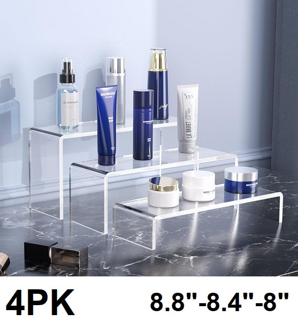 4PK 91(12 TOTAL) GOABROA ACRYLIC MULTI USE STAND RISERS - 8.8"-8.4"-8" - CLEAR