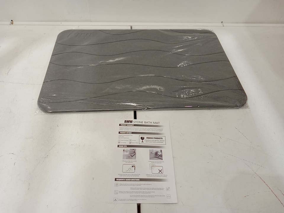 aww Diatomaceous EARTH QUICK DRYING non slip STONE BATH MAT - 15.4" x 23.6" - grey