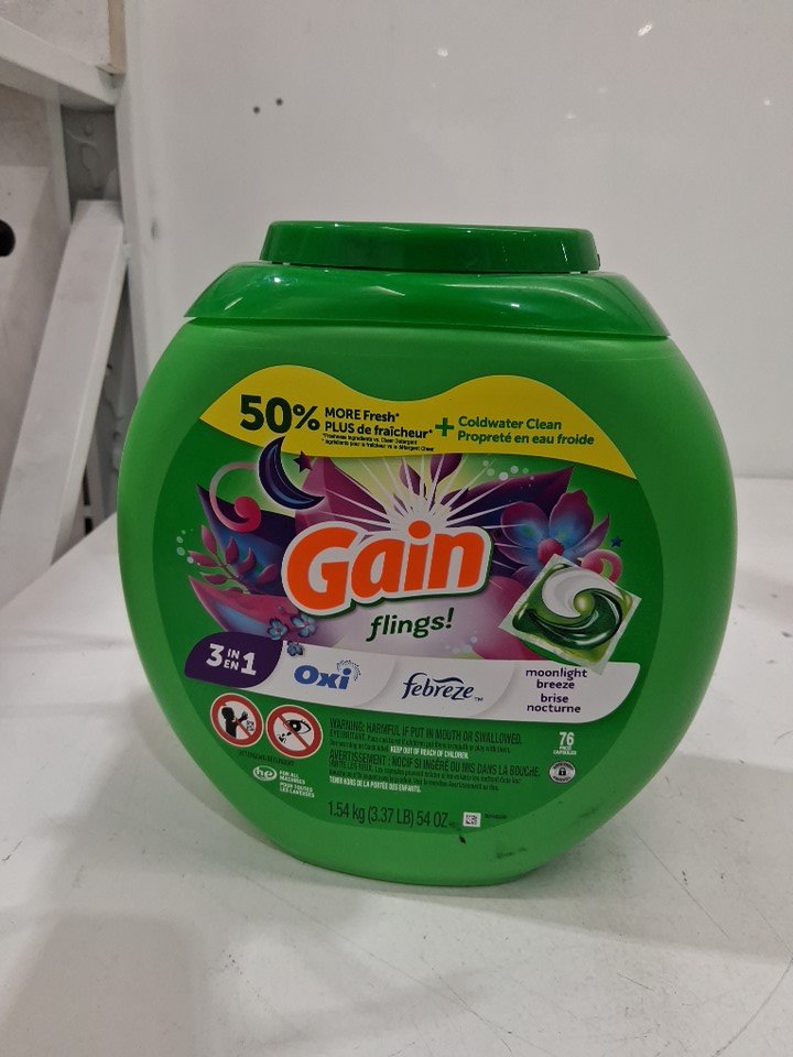 76pk GAIN FLINGS! 3-IN-1 LAUNDRY detergent PODS with oxi boost and febreeze - MOONLIGHT BREEZE SCENT