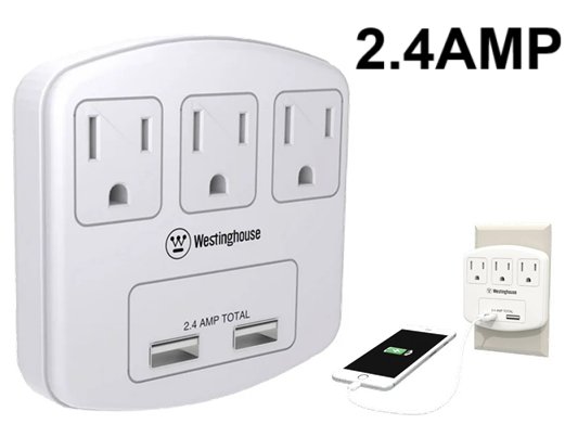 Westinghouse 3-Outlet Wall Tap USB Adapter 3-outlet - white