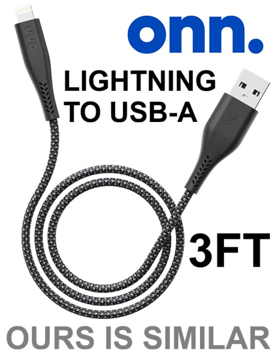 ONN LIGHTNING TO USB-A BRAIDED CHARGING CABLE - 3FT - BLACK