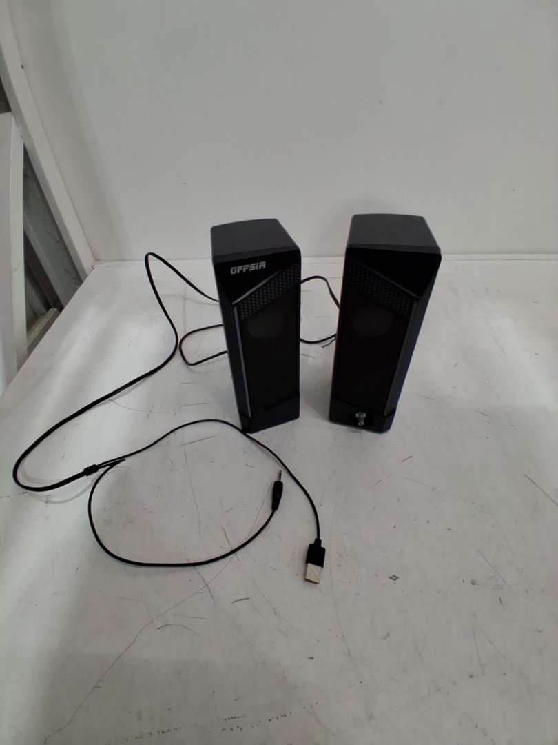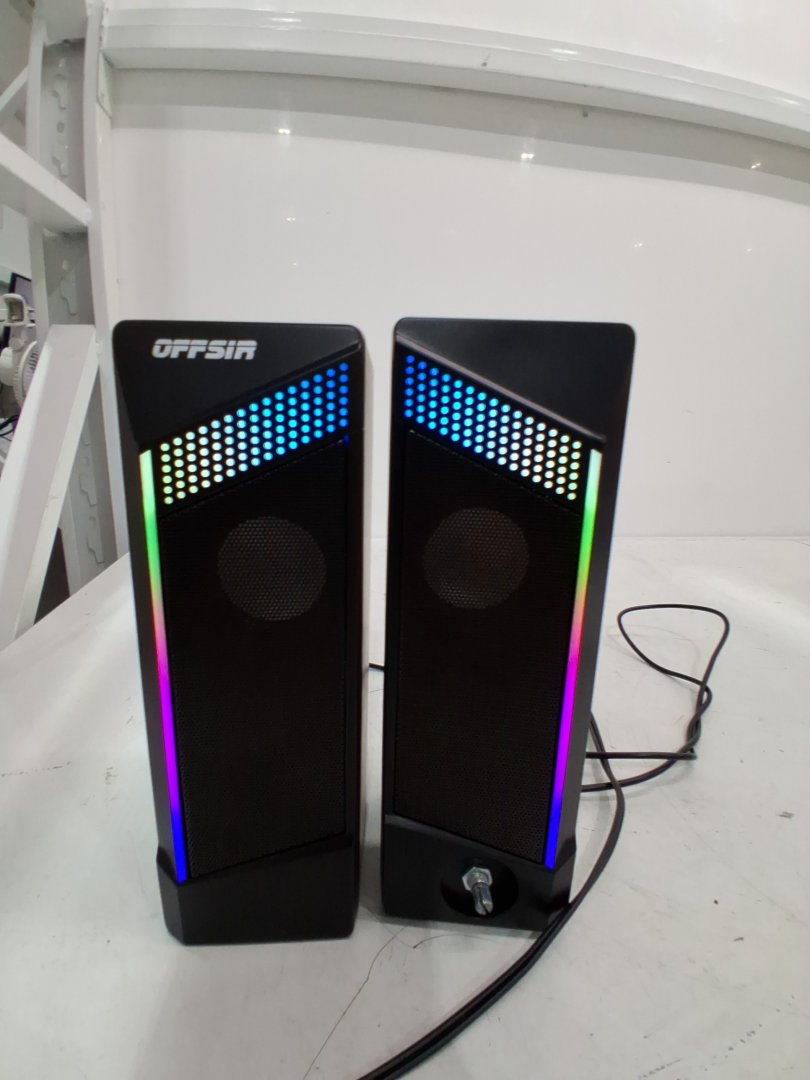 OFFSIR rgb light usb wired gaming speakers with auxiliary cable end - black (model: c0713)