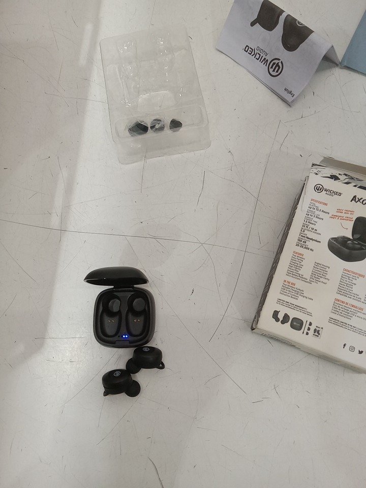 Light traces of debris on the ear tips from previous use. Tested for power/basic function.