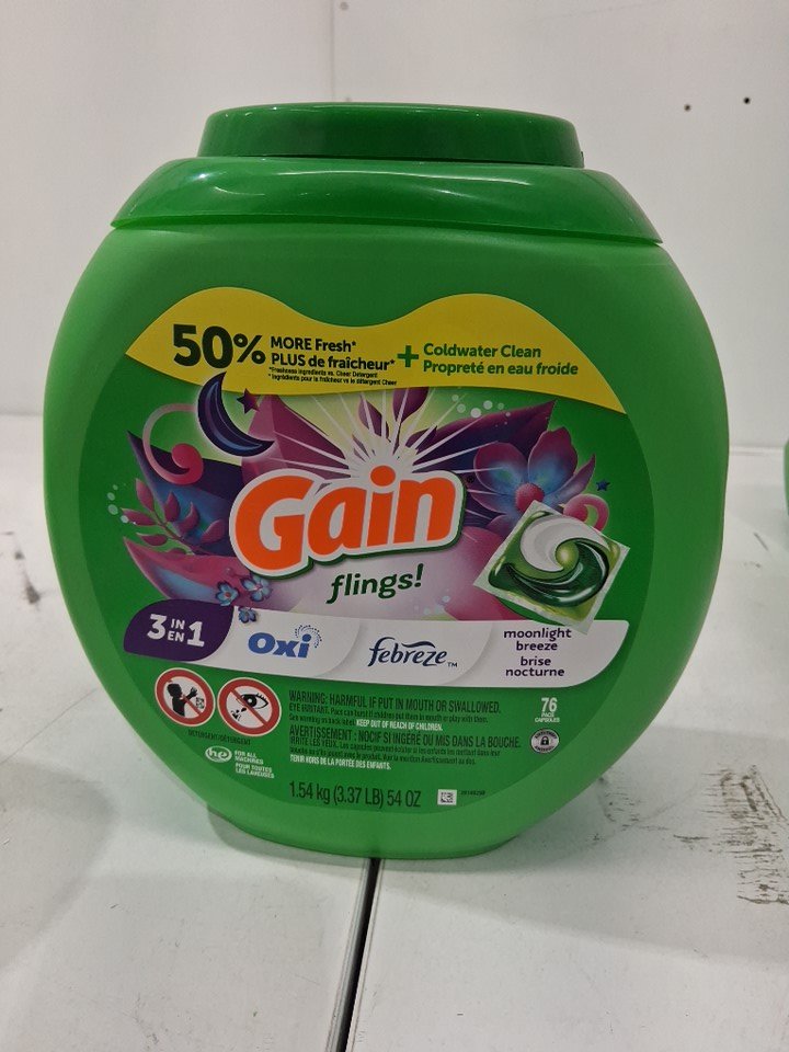 76pk GAIN FLINGS! 3-IN-1 LAUNDRY detergent PODS with oxi boost and febreeze - MOONLIGHT BREEZE SCENT