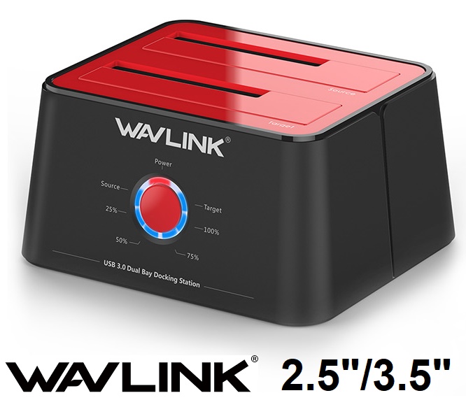 WAVLINK USB 3.0 to SATA I/II/III Dual-Bay External Hard Drive Docking Station for 2.5/3.5" HDD/SSD with UASP (6Gbps) - Red (MODEL: WL-ST334UA)