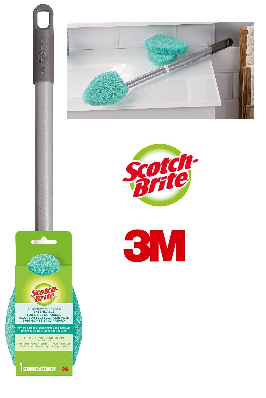 Scotch-Brite Tub and Shower Scrubber, Handle Extends Over 25" WITH Replaceable Head