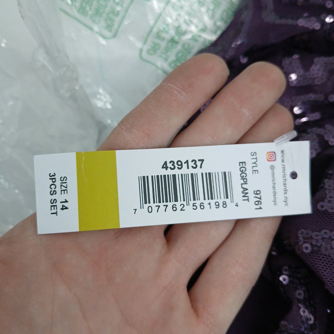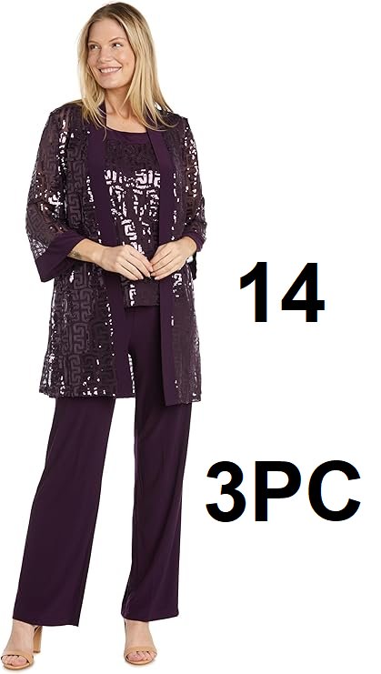 3PC WOMEN'S R&M RICHARDS Sequined Sleeveless Top, Jacket & Ity Duster Pant Set - 14 - EGGPLANT