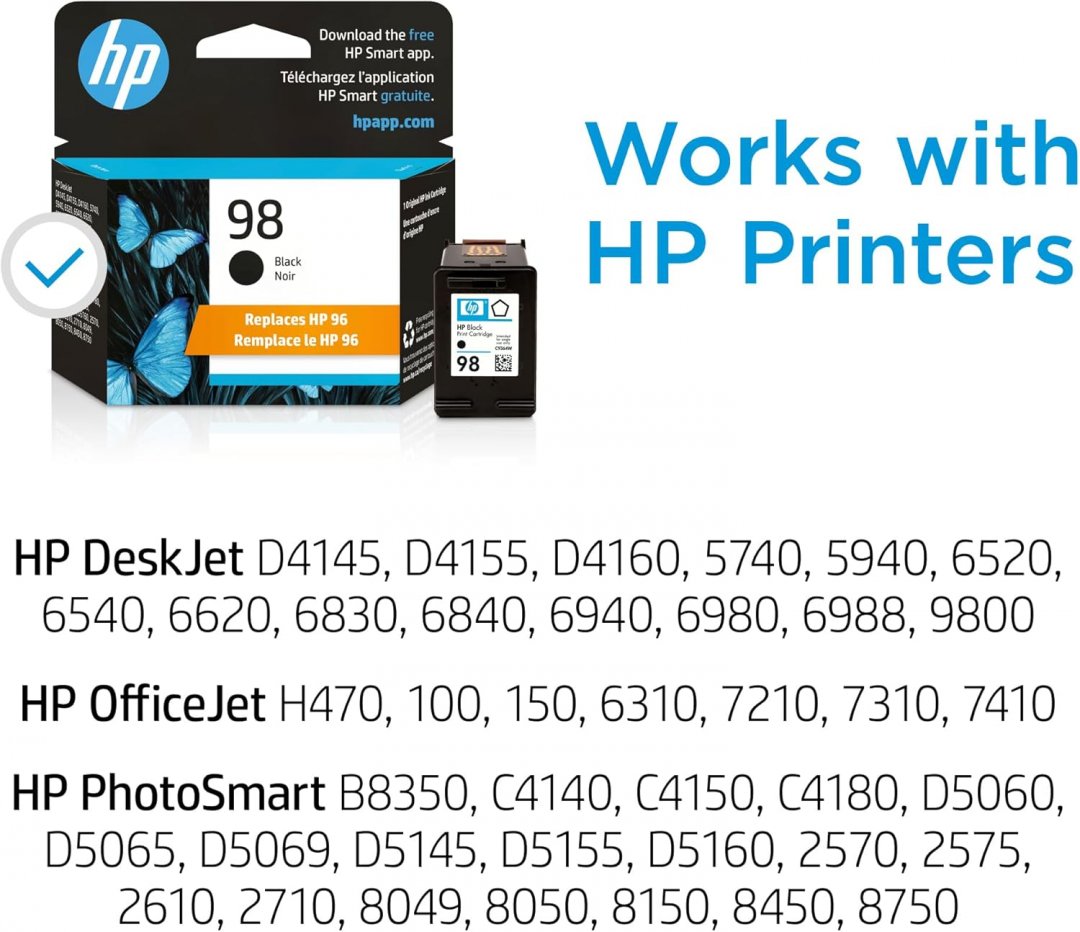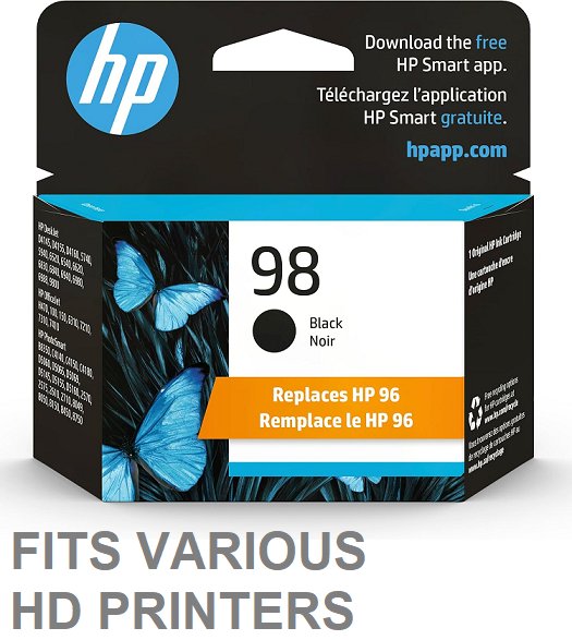 HP 98 Ink Cartridge - FITS VARIOUS HD PRINTERS - BLACK (MODEL: C9364WN)