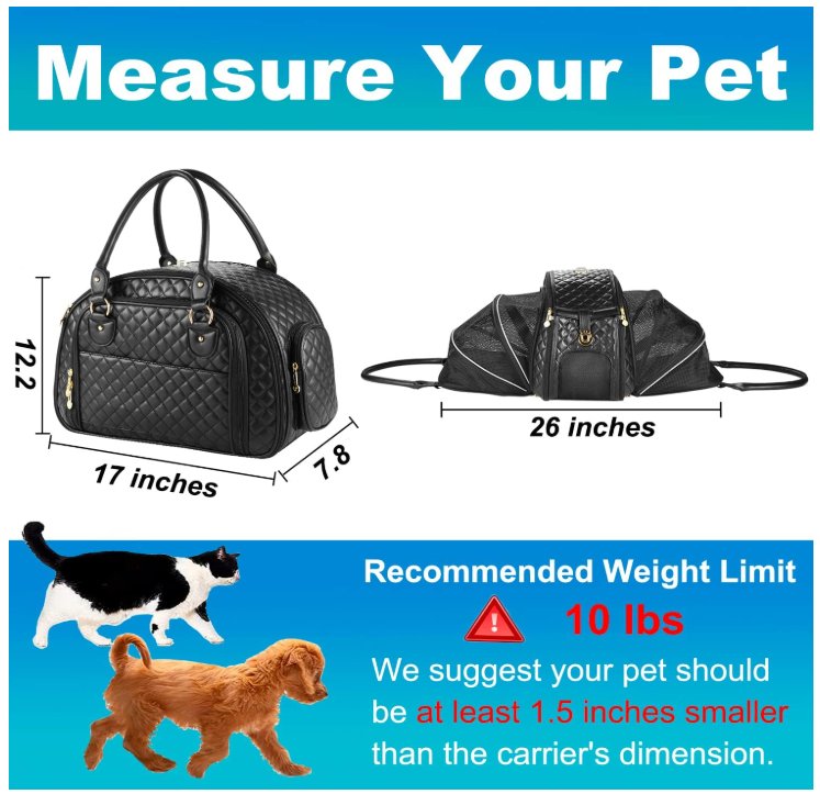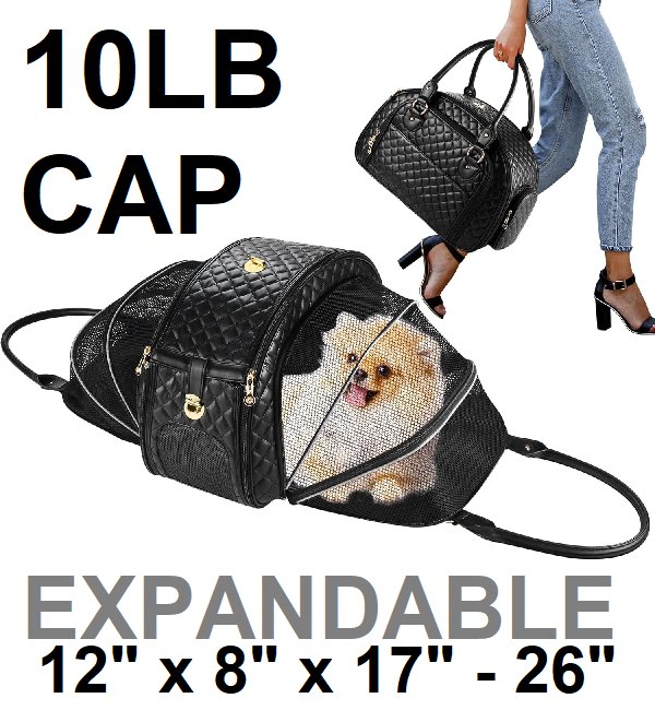 NewEle 2-Side Expandable Small pet Carrier - 12" x 8" x 17" to 26" - 10lb capacity - black