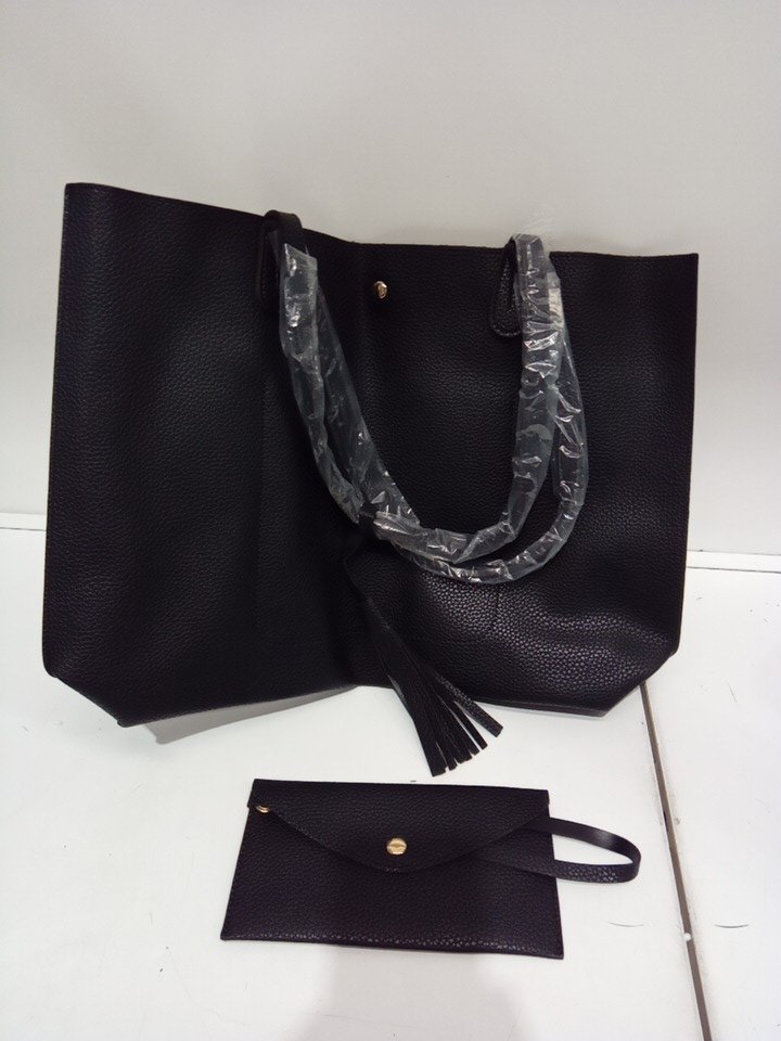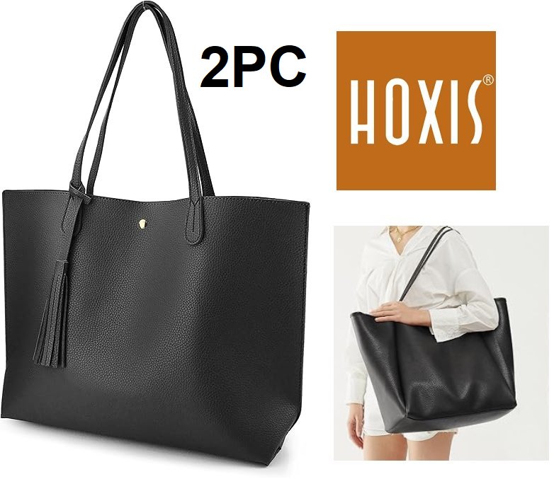 2pc women's HOXIS Oversize faux Leather Tote Bag - BLACK