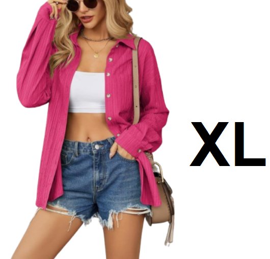 women's HOTOUCH Button Down Shirts Long Sleeve shirt - extra large - hot pink