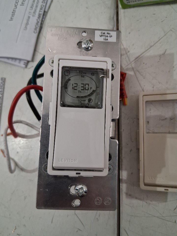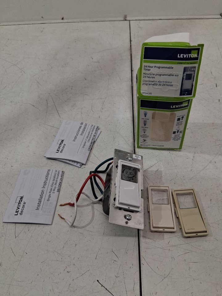 LEVITON DECORA VIZIA 24-HOUR PROGRAMMABLE TIMER LIGHT SWITCH WITH ASTRONOMICAL CLOCK - IVORY/WHITE/LIGHT ALMOND PLATES (MODEL: VPT24-1PZ)