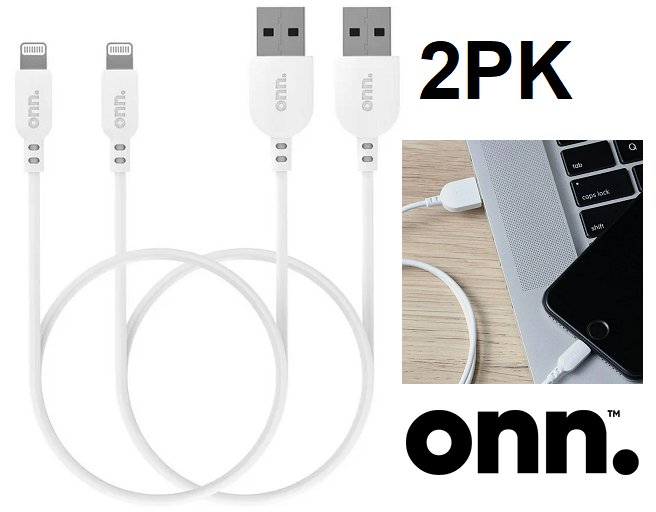 2PK Onn. Lightning to USB Cables - FOR APPLE - 3FT./0.9