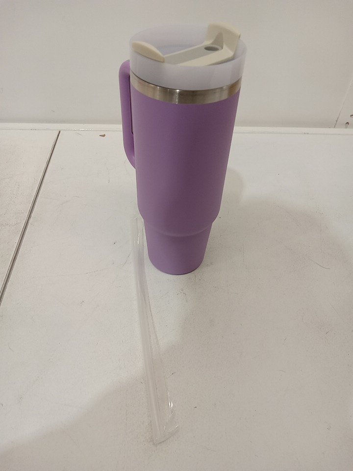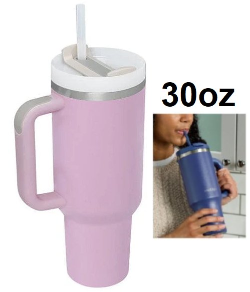 Stainless Steel Vacuum Insulated Tumbler WITH HANDLE AND STRAW - 30oz - purple