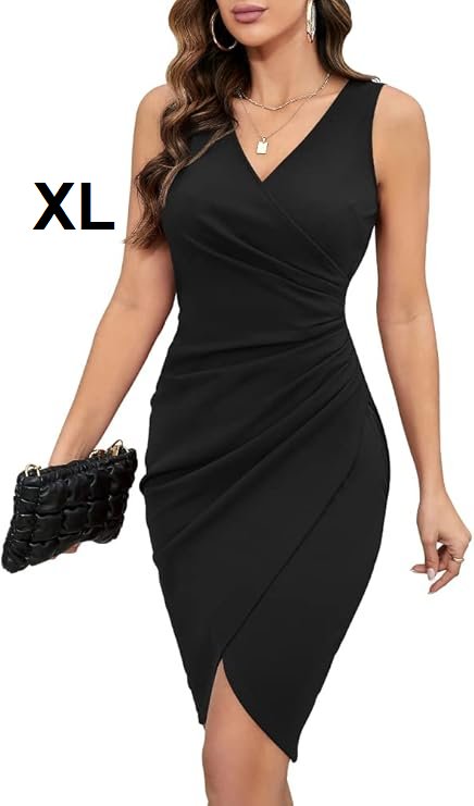 womens ihot Sleeveless ruched Bodycon Cocktail Dress - extra large - black
