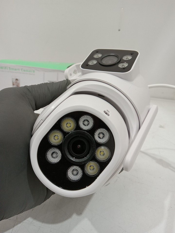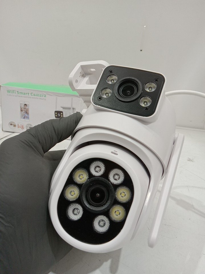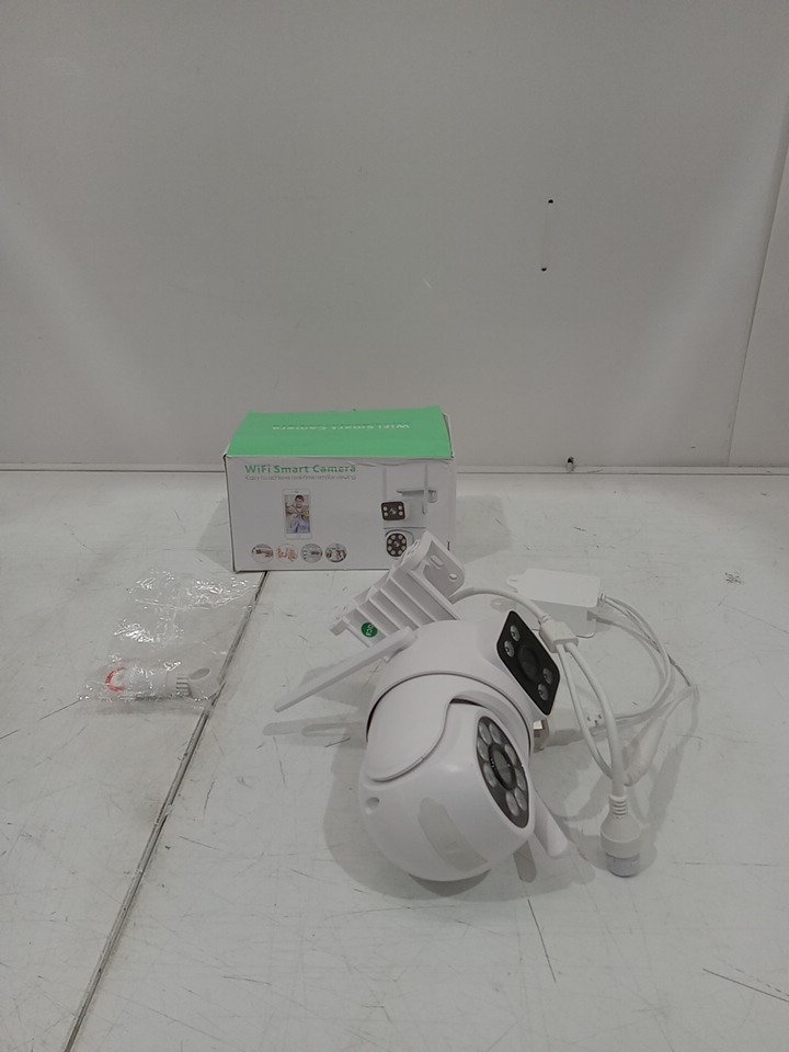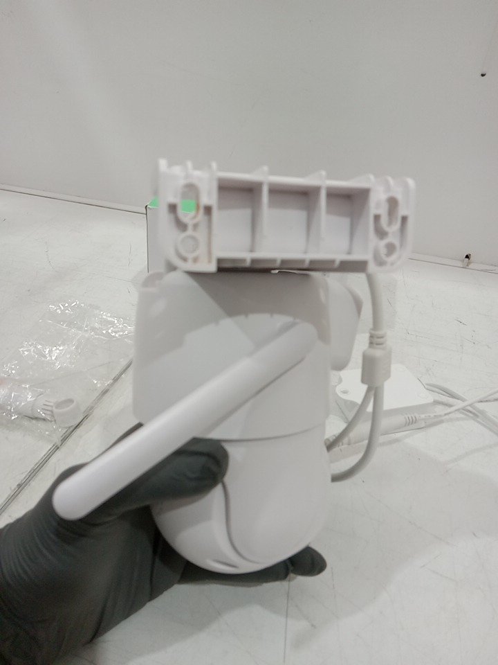 Please note that this product has been previously assembled. There are installation and scratch marks on the mounting hardware. May require additional generic hardware to install the product. Tested for power and camera rotation only. (Please see photos)