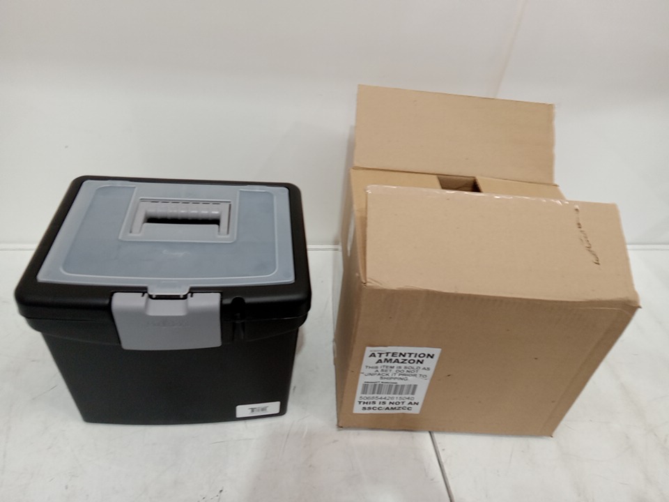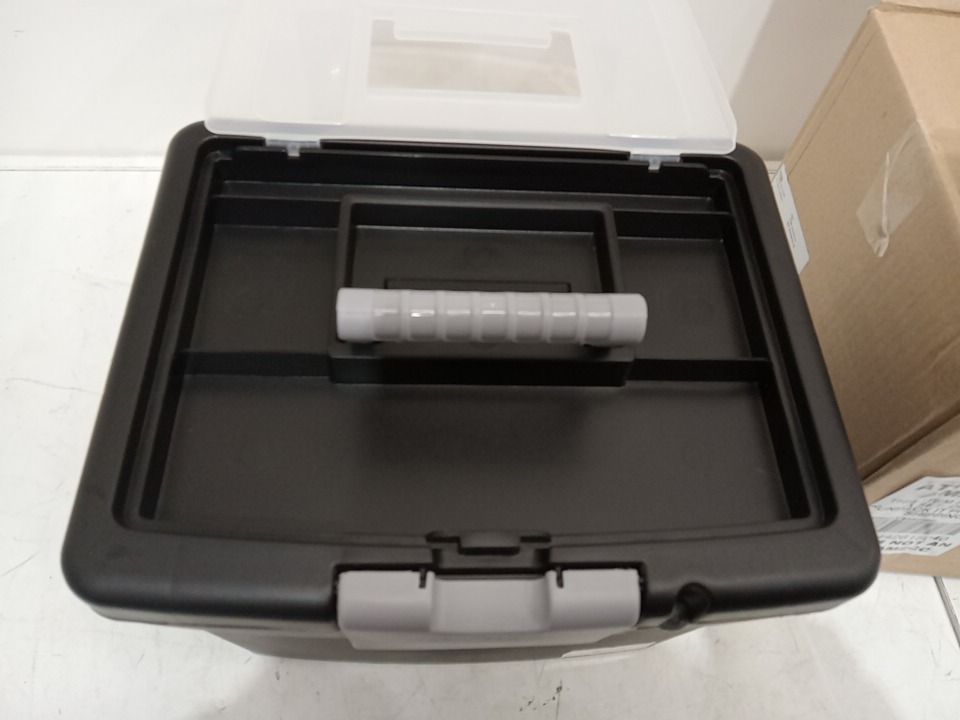 Storex Portable File Storage Box with Translucent Storage Lid Organizer - Black/Grey