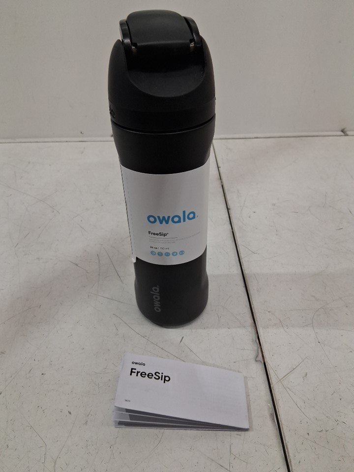 OWALA FREESIP INSULATED STAINLESS STEEL, LEAK PROOF, BUILT IN STRAW , BPA FREE, 24 HOURS COLD WATER BOTTLE - 24oz - VERY BLACK