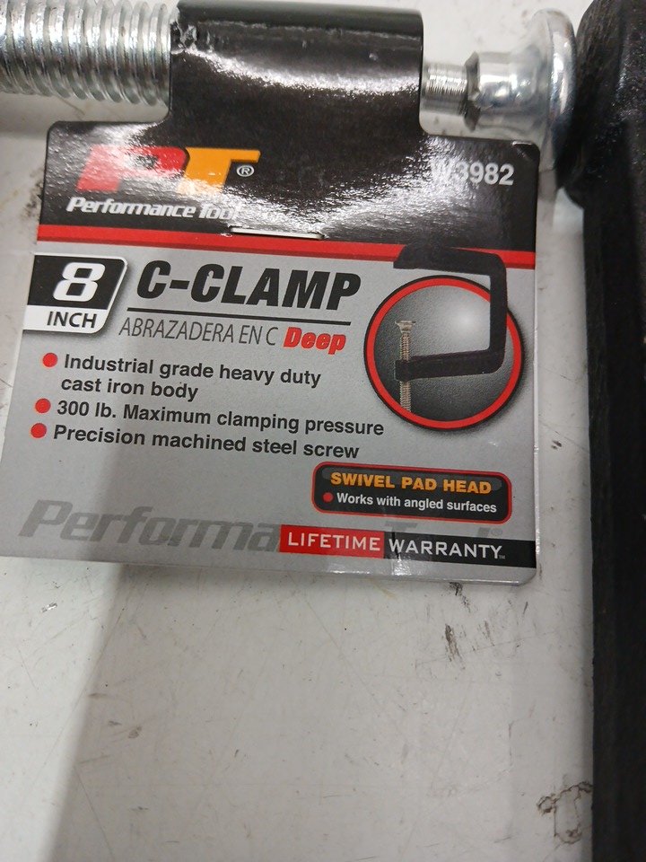Performance Tool Deep Throat C-Clamp - black/silver - 8" - (model: W3982)
