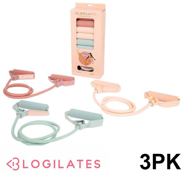3pk Blogilates Resistance Bands WITH HANDLES - LIGHT, MEDIUM, HEAVY - Pink/Green/Orange: