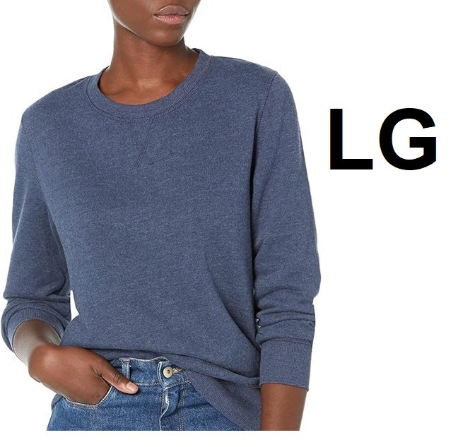 WOMEN'S AMAZON ESSENTIALS FRENCH TERRY FLEECE CREWNECK SWEATER - large - NAVY BLUE (model: WAE50014FL18)