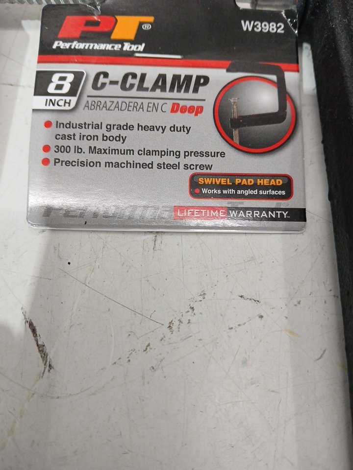 Performance Tool Deep Throat C-Clamp - black/silver - 8" - (model: W3982)