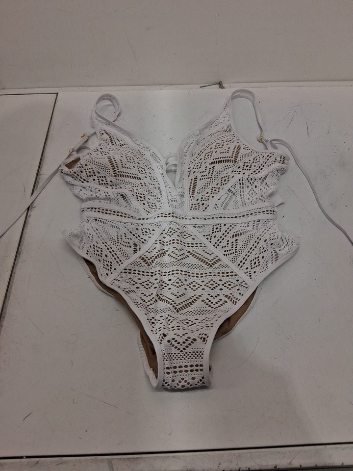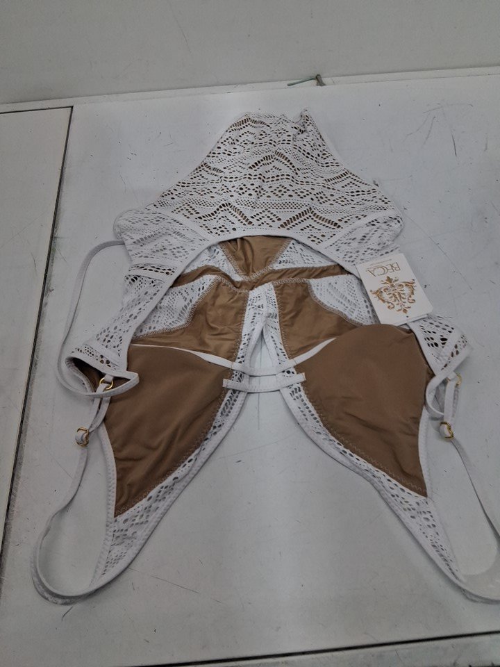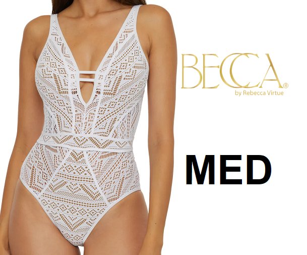 Women's Becca colour play one piece plunge swim suit - Medium - White/tan (style: 711057)