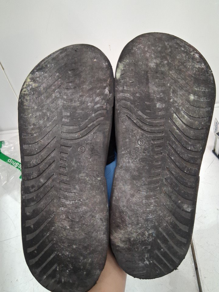 please note there is some dirt residue on the soles of the slides from previous use