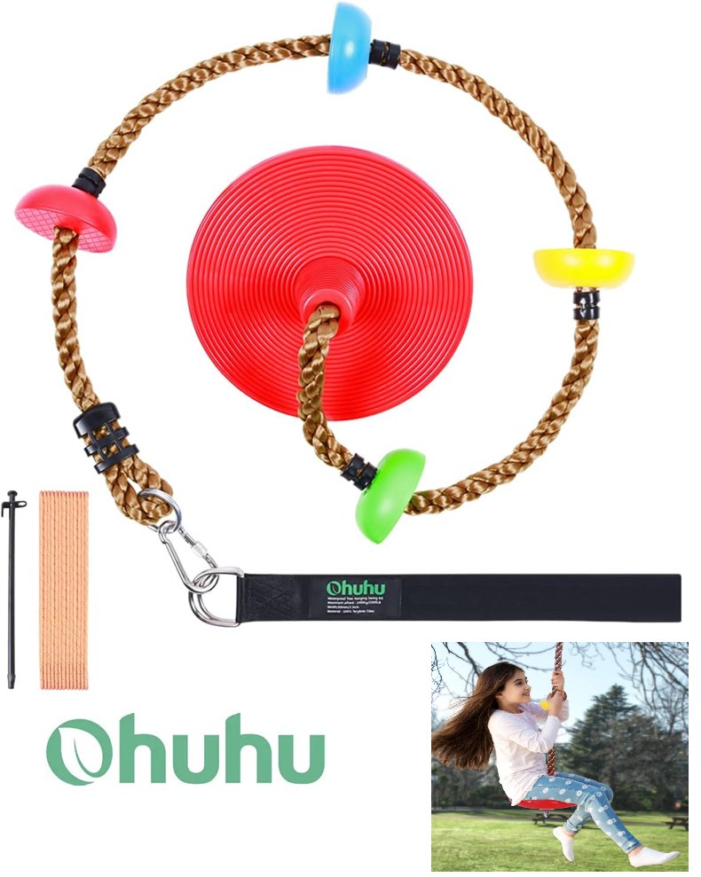 Kids Ohuhu Climbing Rope Swing with Platforms and Disc Seat for backyard - 11.81" × 11.81" × 78.7" - red/multi-colour (model: TL180-32B)