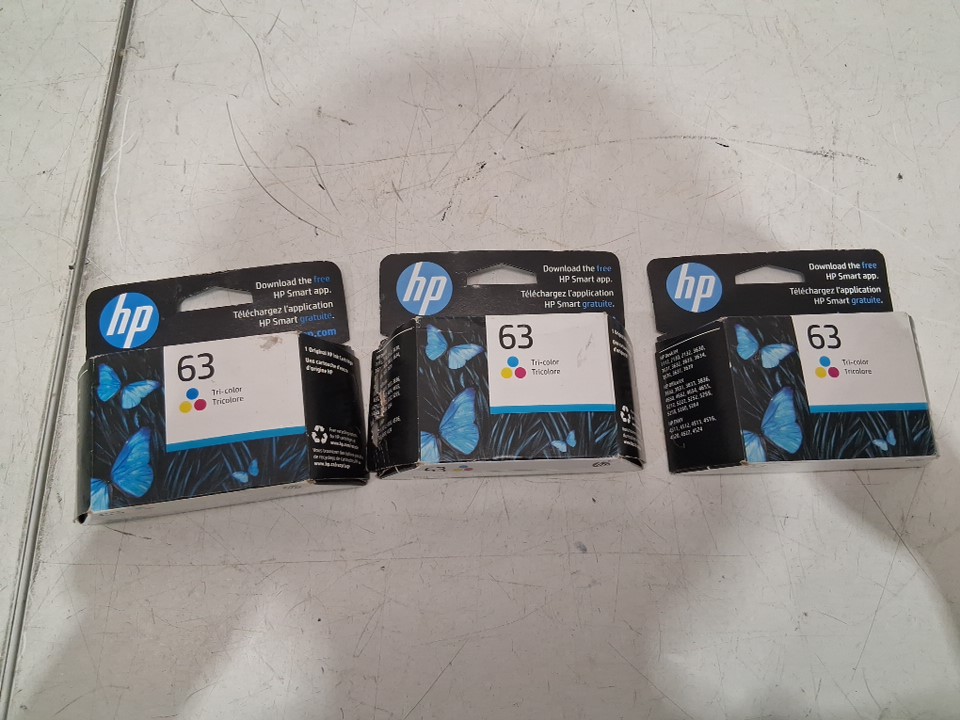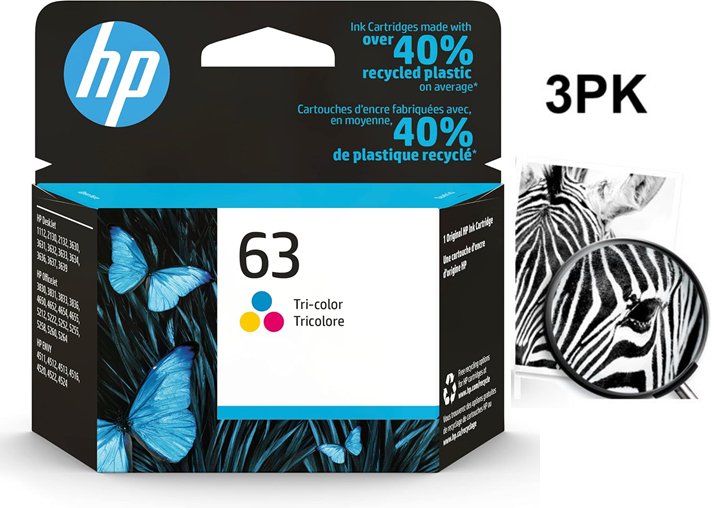 3PK Original HP 63 Ink Cartridge Works with HP DESKJET, HP OFFICE JET, HP ENVY - tri-color (model:‎ F6U61AN#140)