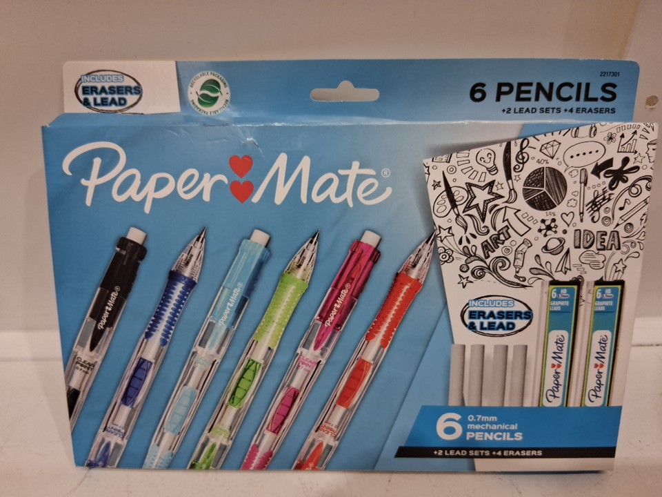 12PC Paper Mate Mechanical Pencils with Lead Sets and Erasers - 0.7mm - Multicolored