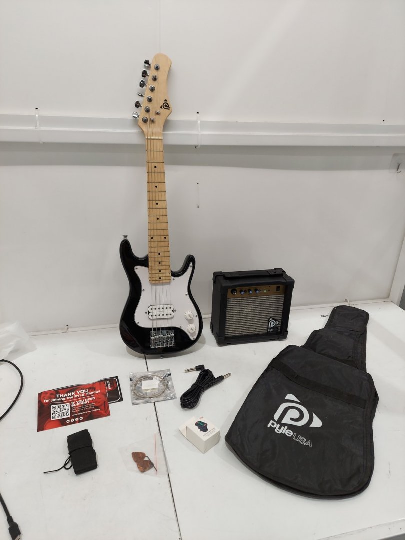 Item arrive loosely packaged in a generic box and there may be cosmetic scratches or scuffs but nothing that effects use and the protective film on the pickguard implies the item is new and unused. tested for power and function