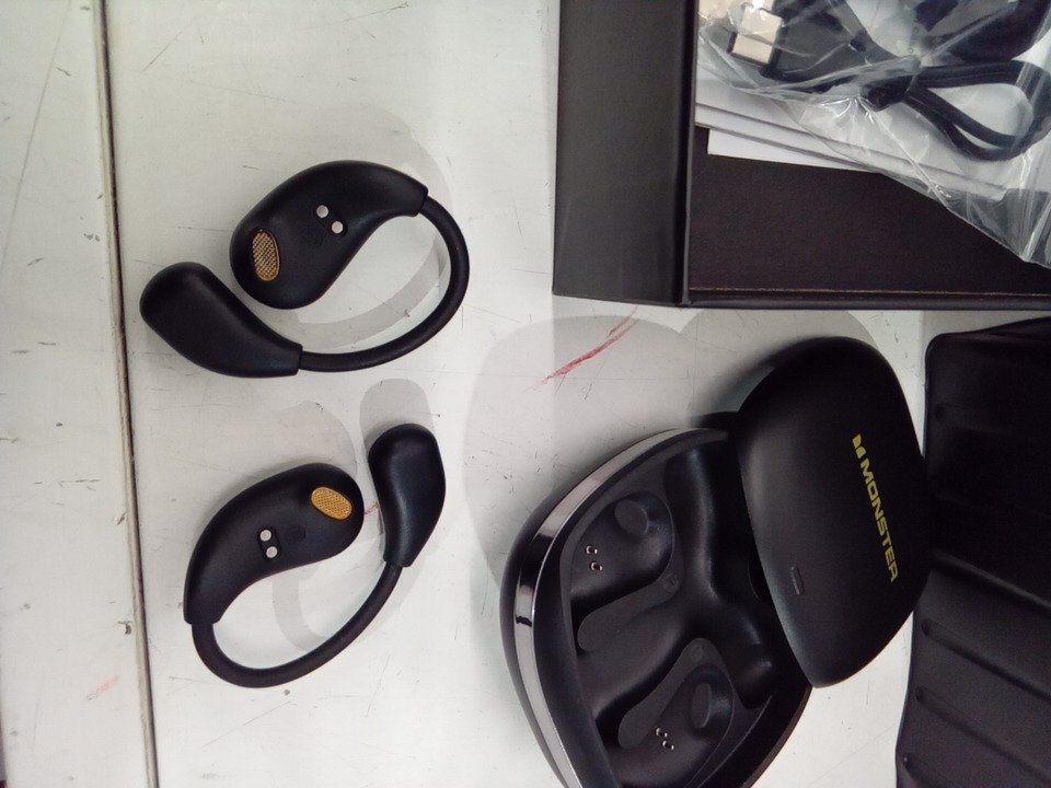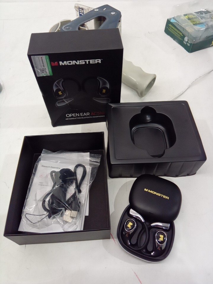 Monster Open Ear AC510 Wireless Bluetooth Earbuds - Stereo Sound, AI Intelligent Noise Reduction, Type-C Charging, Touch Control, 30H Playback, IPX6 Waterproof - Black (model: mh22227)