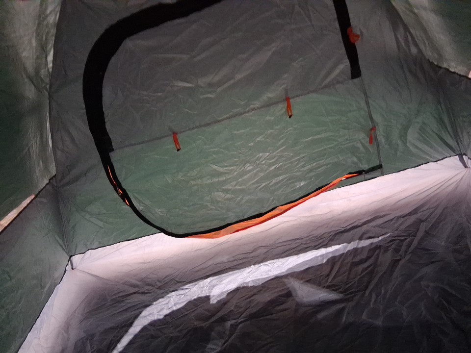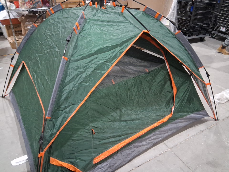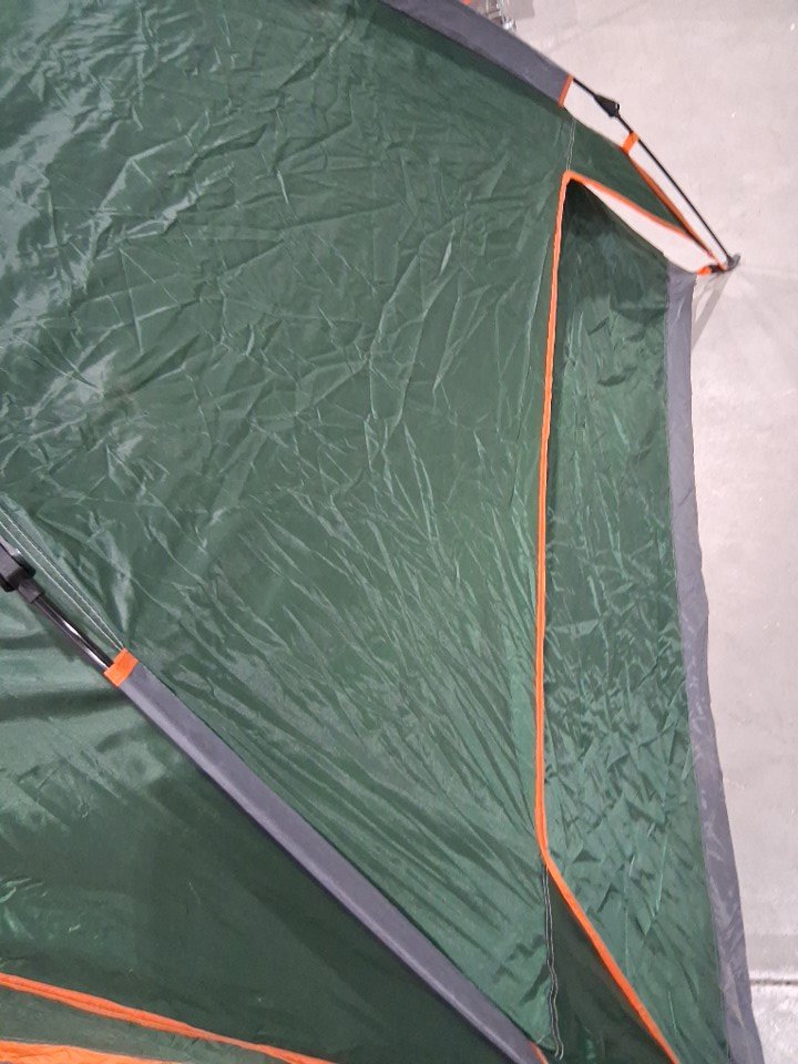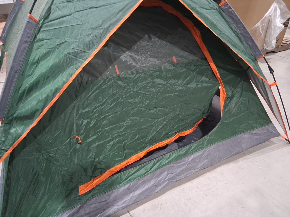only comes with tent and tarp missing the top piece, bag has a small cut in it.