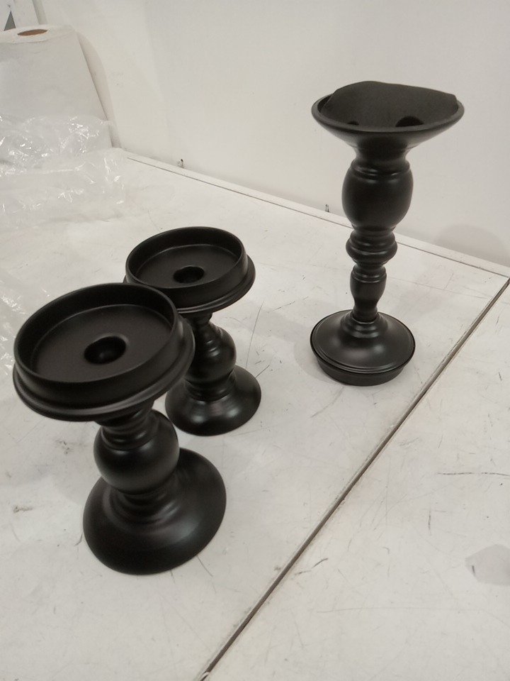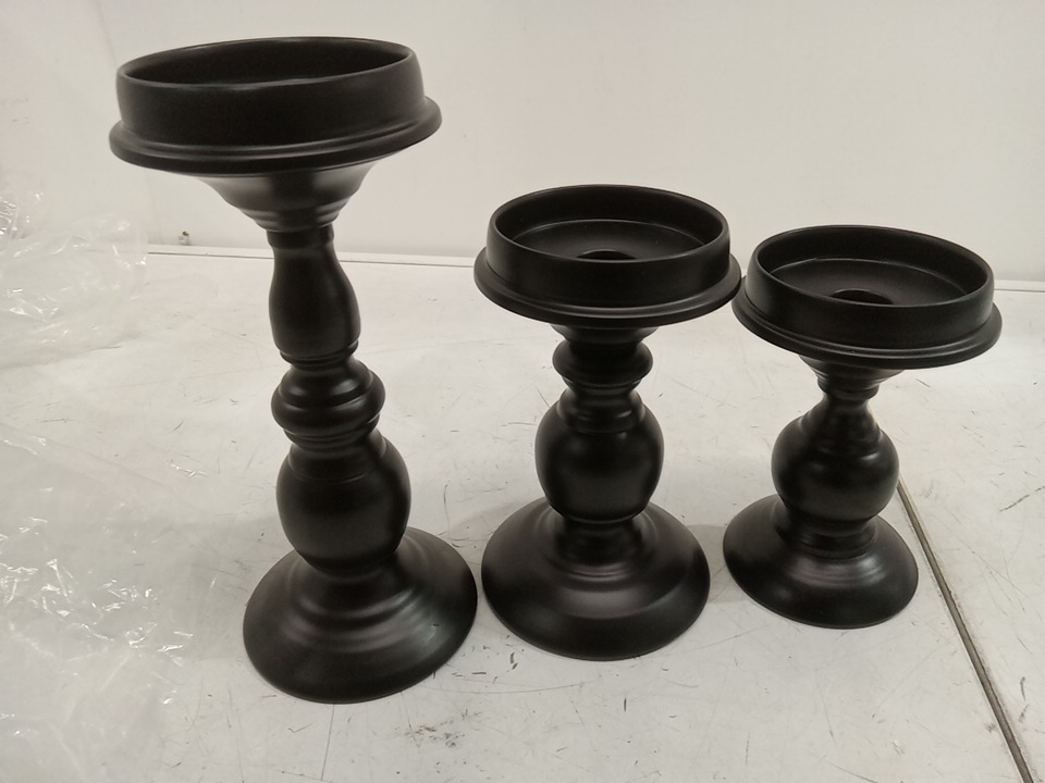 3PC Candelabra Fashion Wedding METAL Candle Stand - 6.5"/7"/9.5" - BLACK