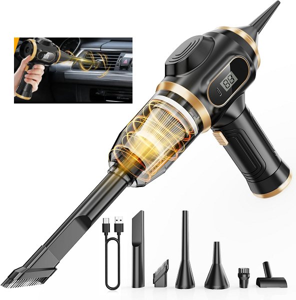 Scstartx Rechargeable Cordless Mini Handheld car Vacuum Cleaner with LCD Display - black/gold (model: xcq-1308)
