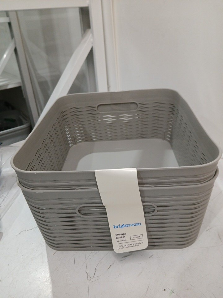 2PK brightroom MEDIUM wave curved MULTIPURPOSE storage bin BASKET - 13" X 11" X 5" GREY (MODEL:002 07 1573)