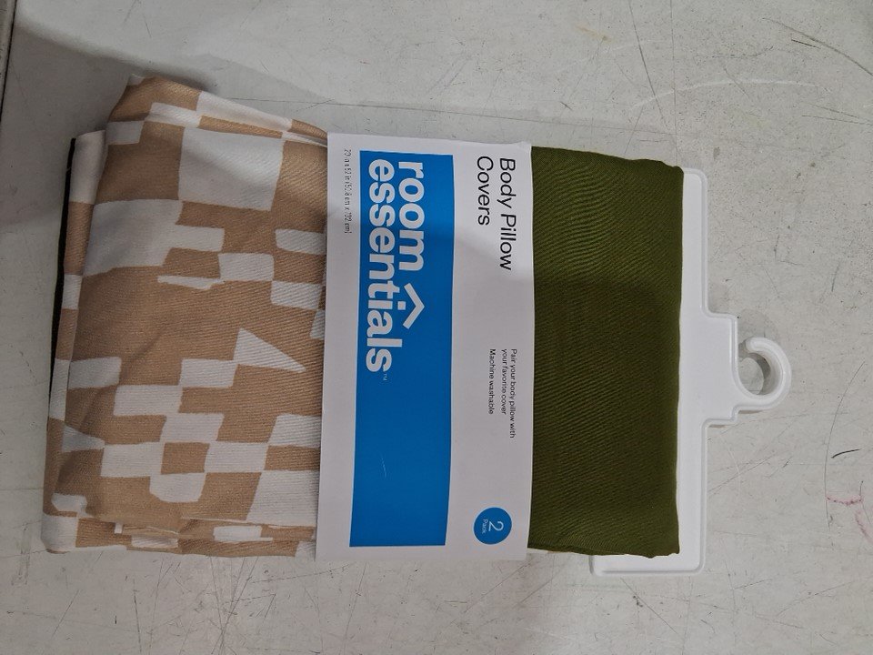 2PK ROOM ESSENTIALS BODY PILLOW COVERS - 20" X 52" - GREEN/WHITE BROWN