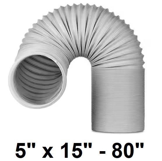 Flexible Exhaust Hose for Portable Air Conditioner - 15" - 80" x 5" - White