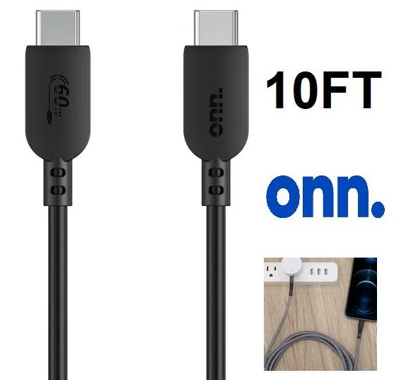 onn USB-C TO USB-C CABLE - 10FT - BLACK