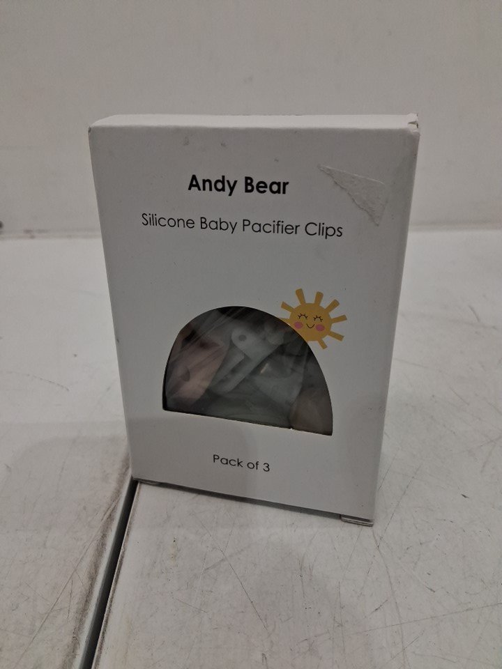 3pk Andy bear silicone baby pacifier clips - green / pink / beige (model: an-23-4)